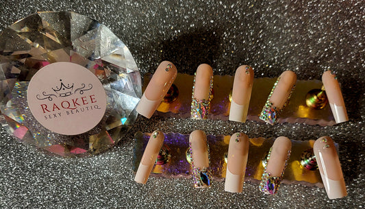 White And Rhinestone French Tips Press On Nails With Rhinestones